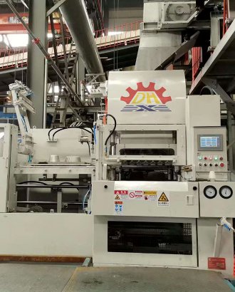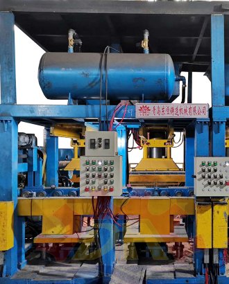 造型主機(jī)是采用氣流加砂頂射+底射系統(tǒng),型砂直接對(duì)著模具分別從上砂箱的上部和下砂箱的下部射砂,型砂填充在砂箱里